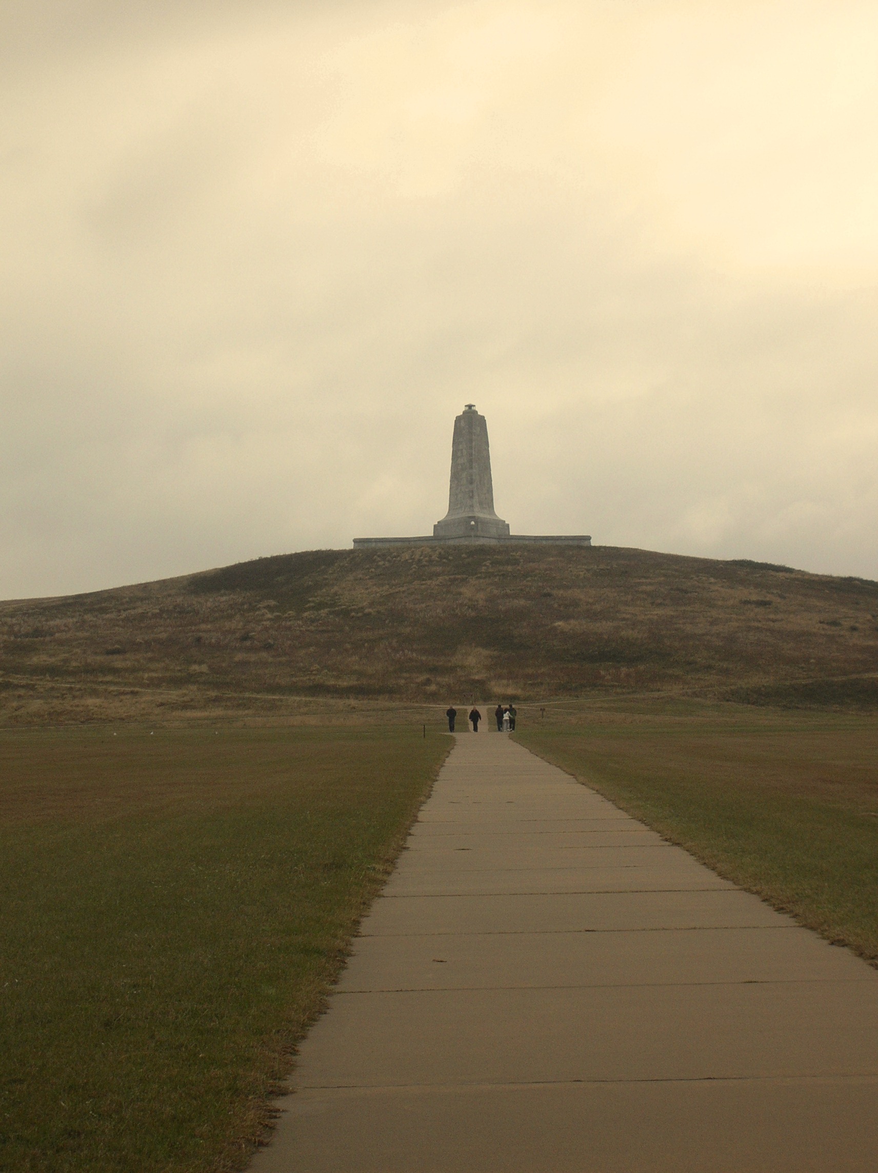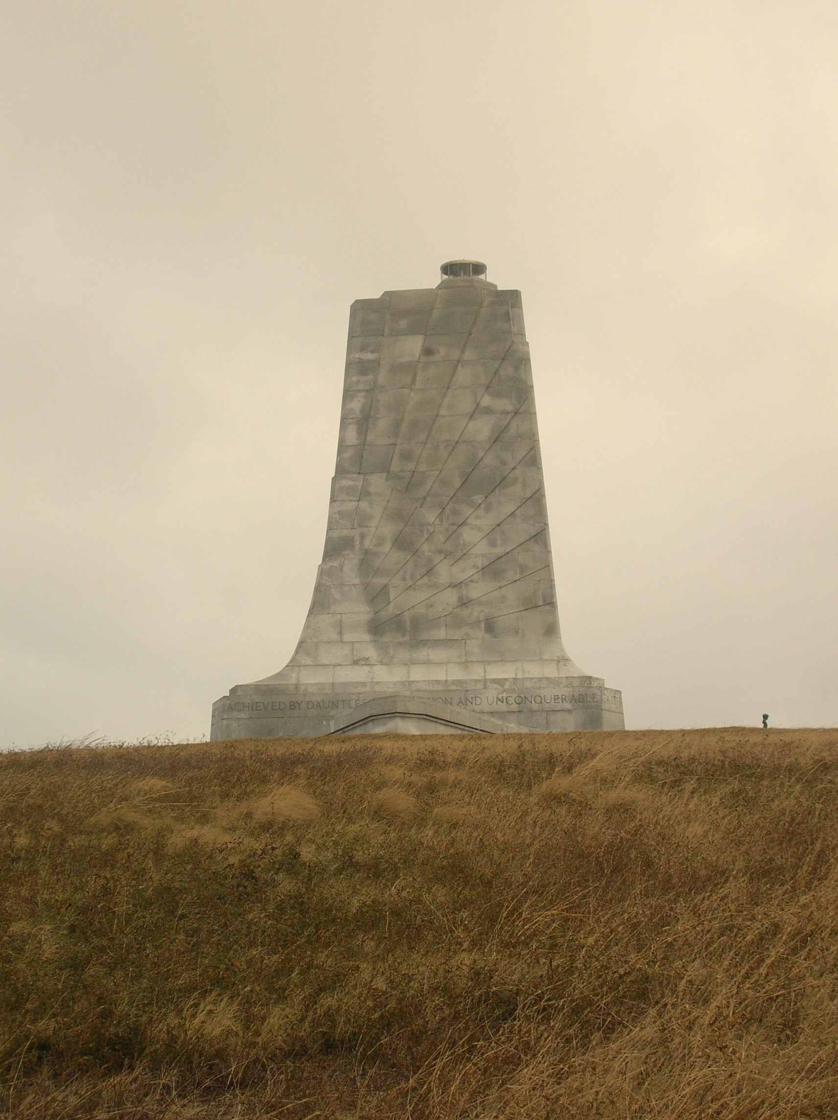 Over Thanksgiving break, I visited North Carolina’s Outer Banks, home of sprawling vacation homes, wild horses, and the site of the humankind’s first flight on December 17, 1903. On that day, Orville and Wilbur Wright (respectively) piloted a self-powered aircraft, achieving four separate flights of increasing distance and duration. A monument to the brothers was erected in 1932 on the top of Kill Devil Hill, overlooking the field where they conducted their flight experiments. The National Park Service took over the site’s administration in 1933 and built a visitors center in 1960.