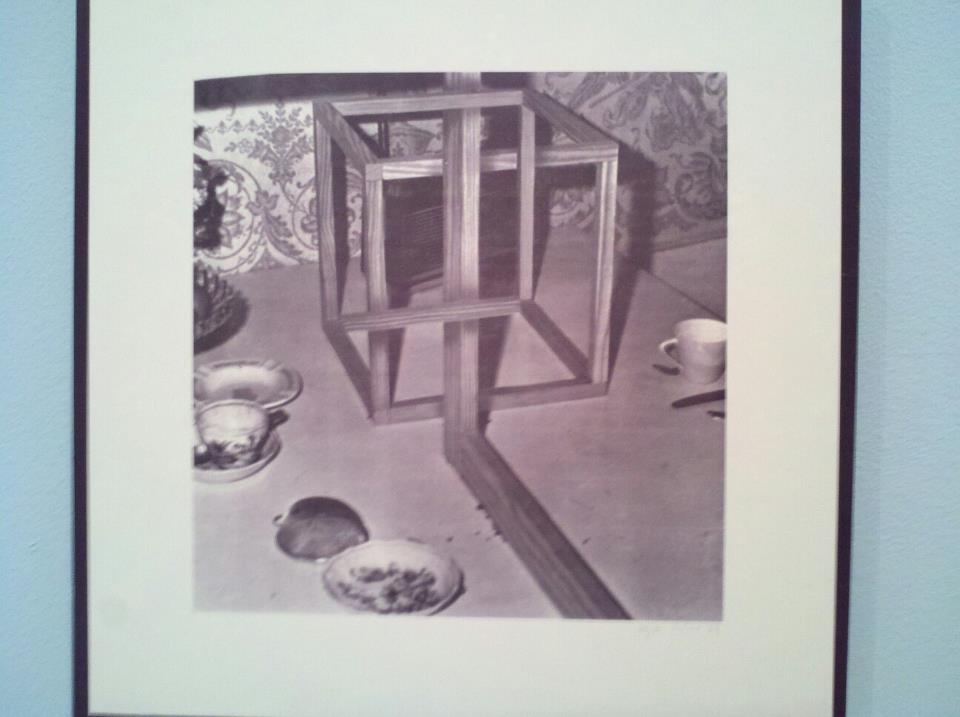 The images themselves are visually appealing and interesting, but it is the labels that are the real high-point of this exhibition. These labels play on the ordinary idea of a museum label with each label providing text that follows the same prescribed format. After providing the “normal” information about the creator, the title of the piece, the date of creation, and its material, the object labels offer interpretation that encourages visitors to engage with and contemplate each piece. The first sentence in this interpretive section provides an explanation of what the image is, but also provides a hint as to possible interpretations of the image and issues that can be addressed. The first sentence for an image titled 9 Objects, for instance, reads “This is a print of a photograph of an impossible construction ensconced in a bourgeois kitchen.”