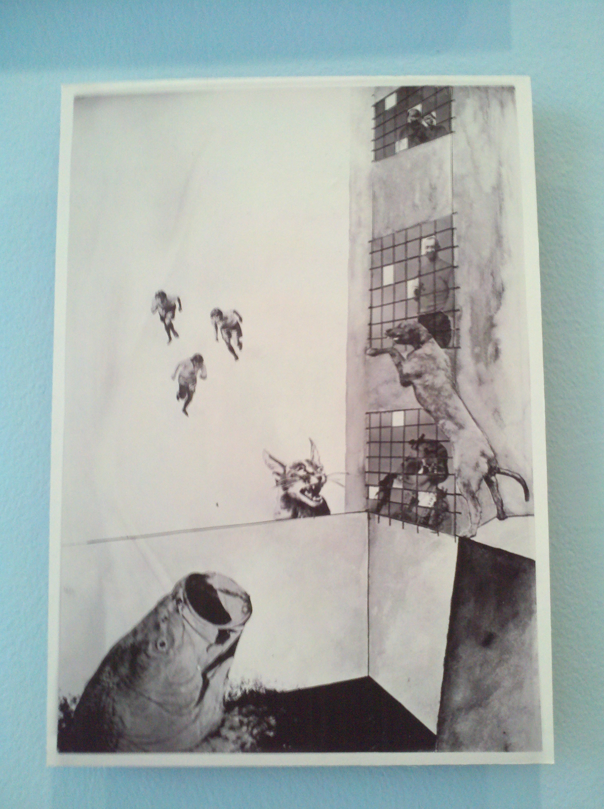 The second sentence in the label format asks a question that is, to some degree, related to the image. The questions here prompt a range of emotions and contemplations from fond reminiscences to issues of the city and even personal failings. Some of the questions asked here include “Where was your last vacation?”, “How does demolition make you feel”, and “What’s the biggest sin you’ve committed this week?” These questions promote engagement with the exhibition in a way that is not often seen in ordinary art museum exhibitions. The third and final portion of each label, unlike the questions which are often playful, prompt the visitor to contemplate more serious and overarching concepts and ideas that can be drown from each image. These sentences can seem beautifully poetic at times, and are both thought-provoking and enjoyable to read. The final sentence for the image The Mavericks II (Die Eigenbrötler II) is a particularly poetic example, it states “The fog comes on little cat feet. It sits looking over harbor and city on silent haunches and then moves on.” Each label provokes a unique emotion within the visitor, encouraging different discussions and an exchange of ideas, whether between the curator and the visitor or between multiple visitors. As a solitary museum-goer, I found myself alternately giggling at the questions asked, racking my brain for the last time I took a vacation, and desperately wishing I had someone with me so that we could discuss the ideas raised by each piece and its text.