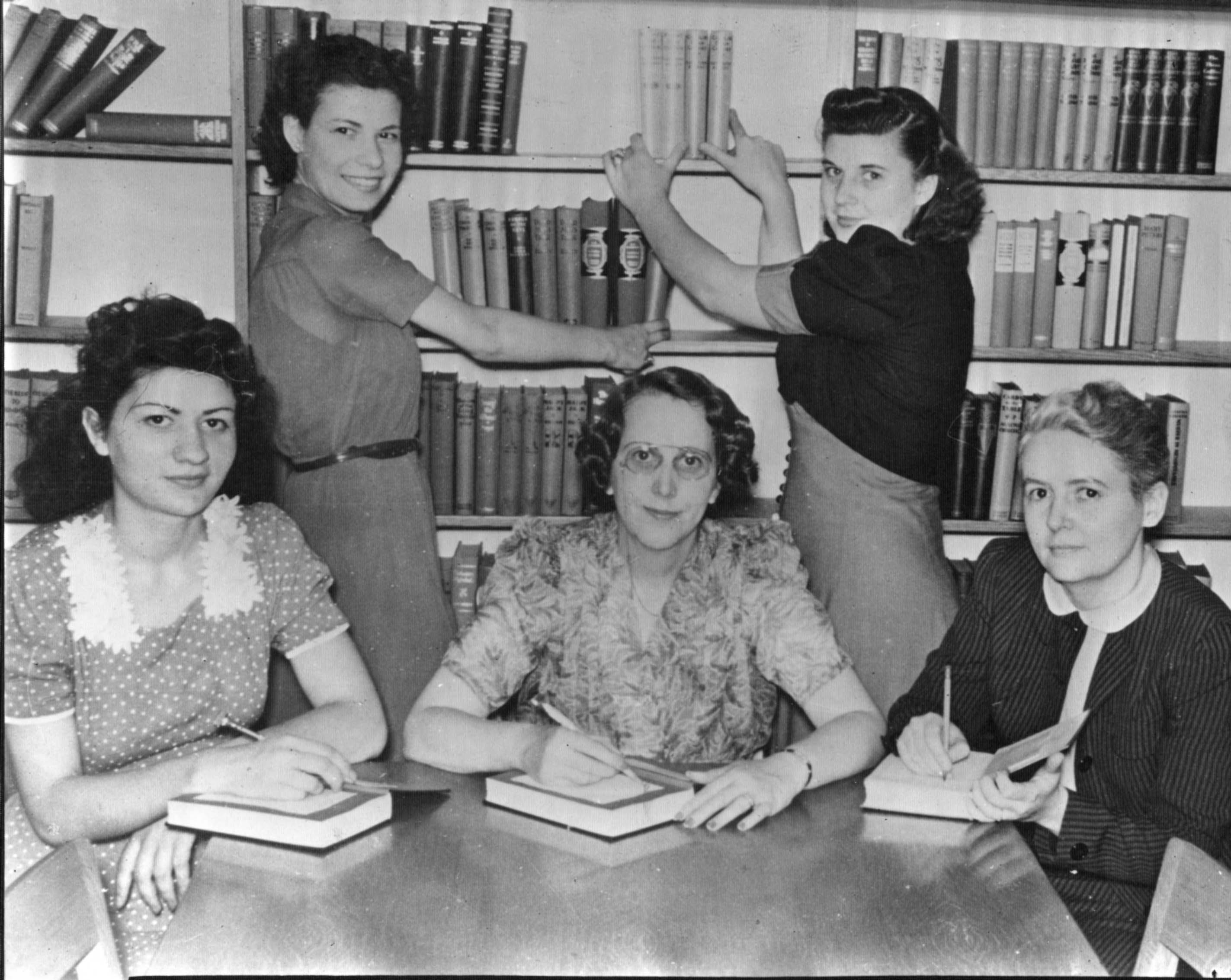 The Northtown Library made important contributions to community morale during World War II. It provided technical books to educate the defense workers that had flooded to Chicago. Families with members serving abroad checked out books on the countries where their loved ones were stationed. Smith told the Tribune that the library helped residents “take their minds off things for a while… These persons usually ask for mystery books – something which will challenge their brains and keep their minds occupied.” The library also offered avenues for the West Ridge community to aid those affected by the war. In July 1941, the library collected books to donate to locally stationed troops, and Perley organized a Girls’ Club that collected dolls for English war refugee children. In June 1945, the Northtown Library took part in a University of Chicago adult education program based on reading the classics, the first of several very popular Great Books programs that would occur on and off throughout the remainder of the 20th century.